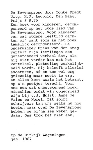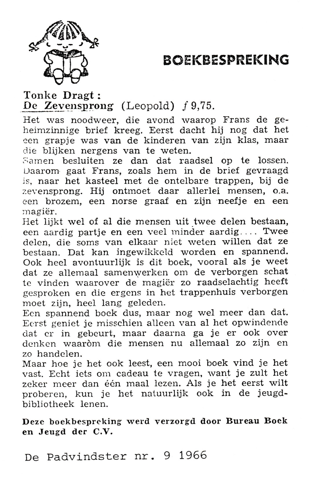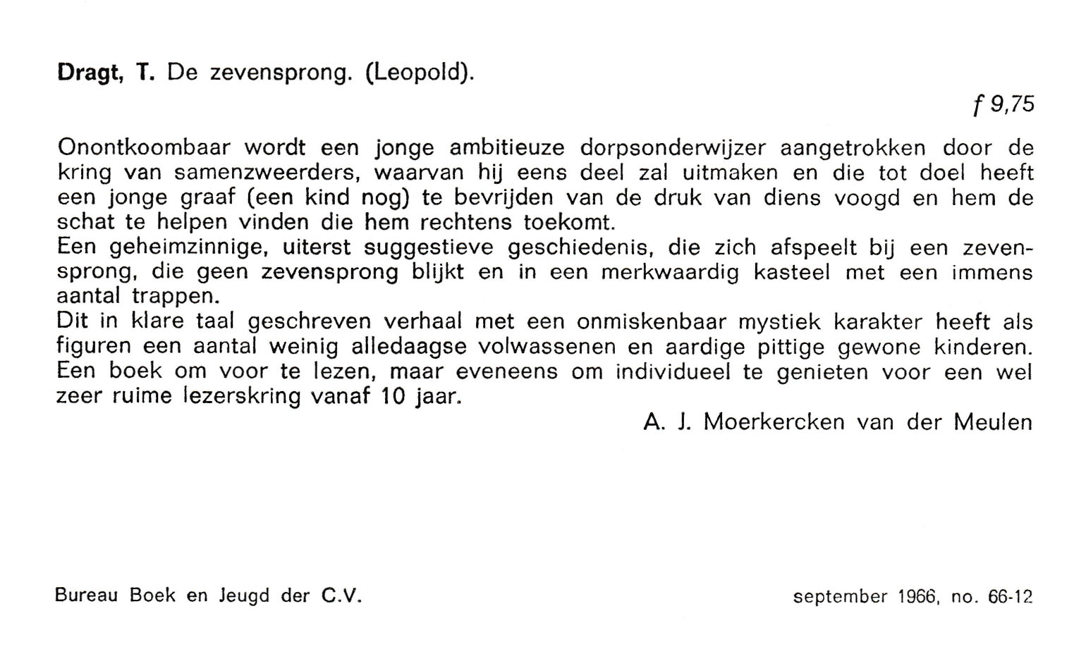 Deze recensie is geschreven door A. J. Moerkercken van der Meulen en verscheen in september 1966. De verschijningsbron is onbekend, maar is verzorgd door Bureau Boek en Jeugd der C.V.
