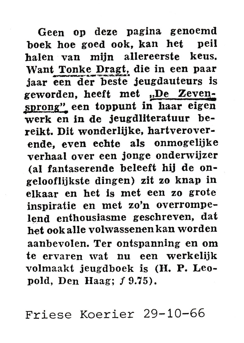 Van deze recensie is onbekend wie haar geschreven heeft. Deze recentie verscheen 29 oktober 1966 in de Friese Koerier.